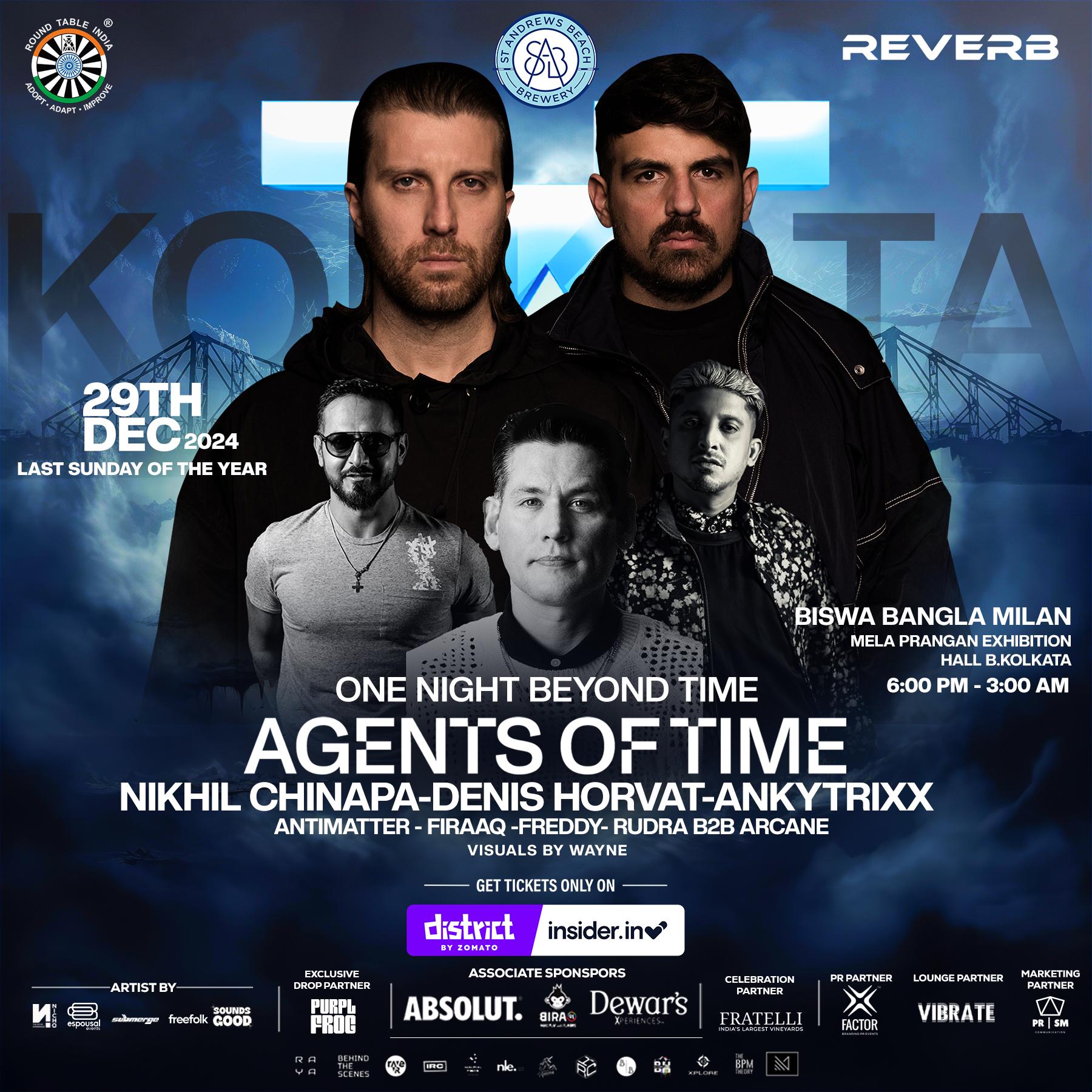 India, December 26, 2024—The internationally acclaimed melodic techno duo Agents of Time will perform for the very first time in East India this December, marking a historic moment for Kolkata’s electronic music scene. Organized by Reverb in partnership with Round Table India (RTI), this landmark event promises an unforgettable night of electrifying performances, innovative stage designs, and cutting-edge sound and lighting.