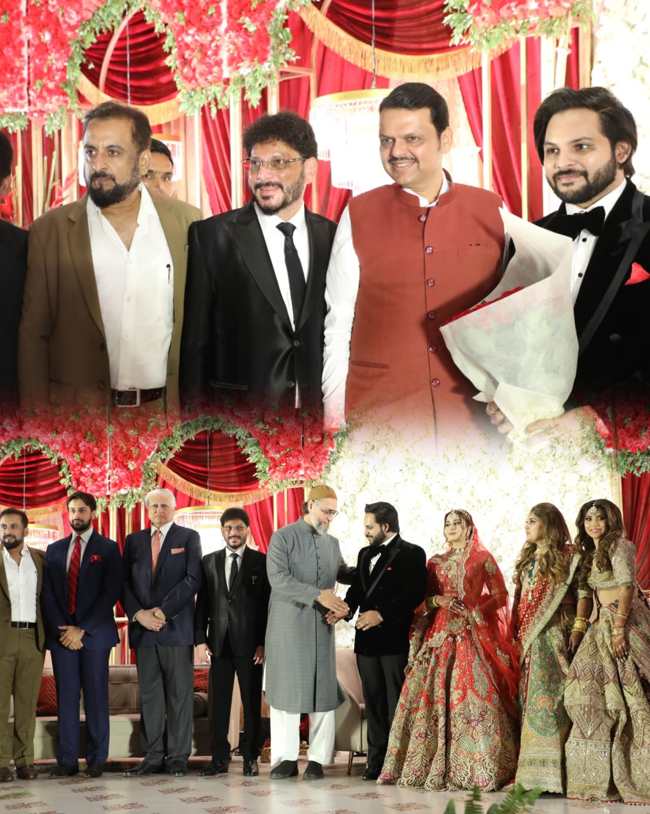 In a grand ceremony held at Mumbai’s Sahara Star Hotel, AIMIM national spokesperson and former MLA Waris Pathan hosted a wedding reception for his son, Advocate Arbaz Pathan, and his bride Nailah. The event was attended by several prominent personalities, including Chief Minister Devendra Fadnavis, AIMIM president Asaduddin Owaisi, and MLA Ashish Shelar.