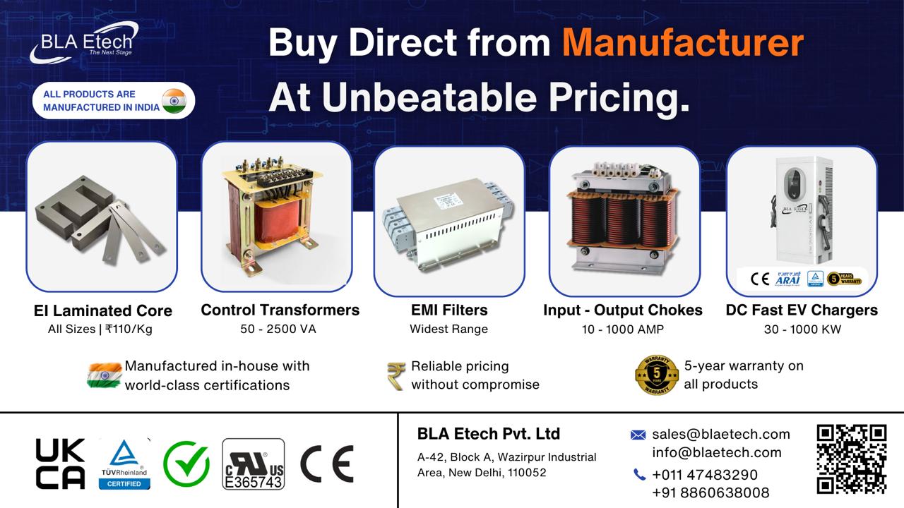 Mumbai, India – BLA Etech, India’s most trusted and advanced electrical solutions manufacturer, continues to revolutionize the power electronics industry with its comprehensive range of high-quality products and cutting-edge EV charging solutions. With 13 years of engineering excellence and over 1,100 successful installations, the company has established itself as the nation’s one-stop shop for EMI/EMC filters, transformers, reactors, and next-generation electric vehicle chargers.