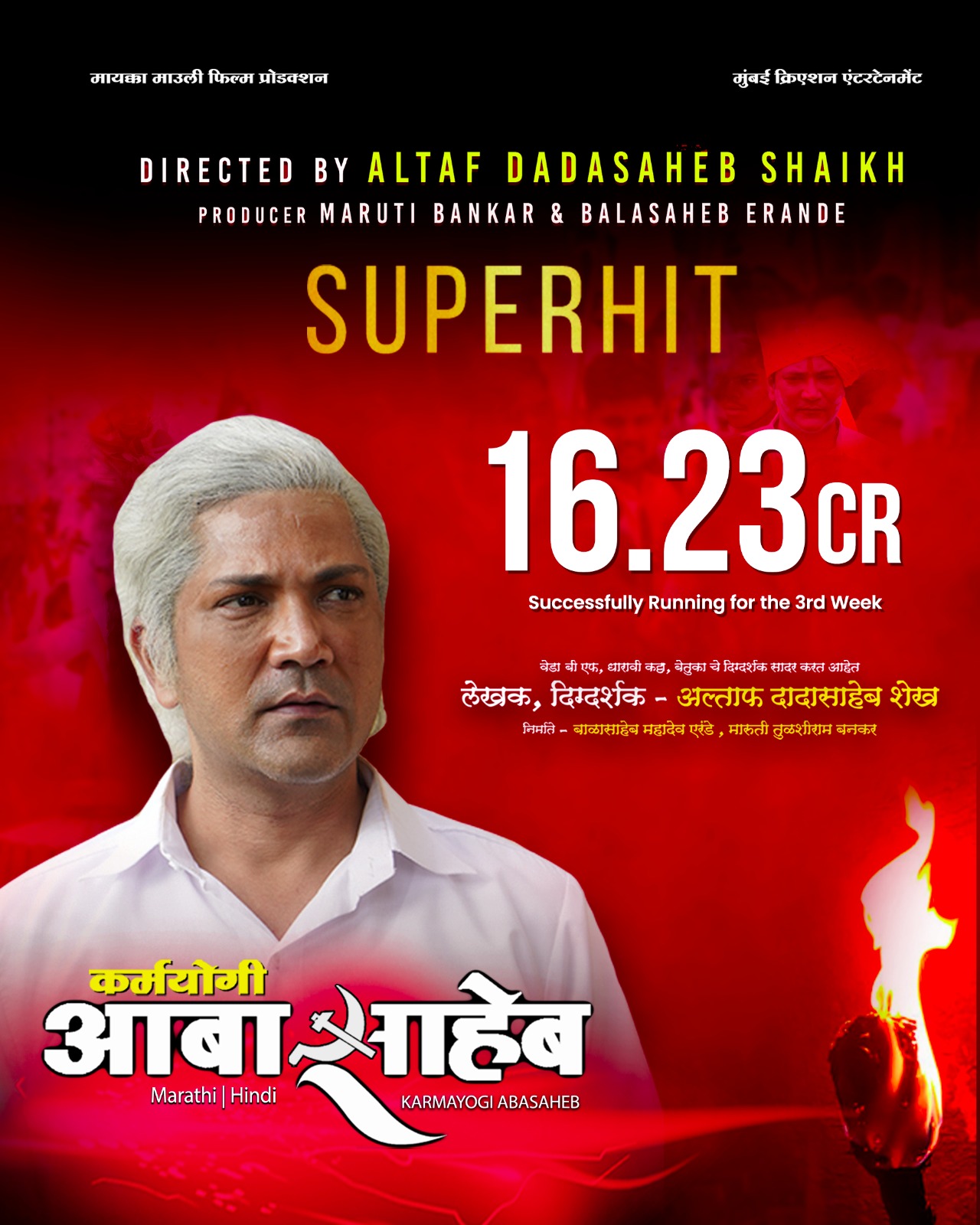 Altaf Dadasaheb Shaikh has written and directed one of the best movies till date like Veda BF, Betuka, Come on Vishnu, Break Down, Dharavi Katta. Now the film Karmayogi Abasaheb is touching the hearts of the audience with his powerful writing and direction. Due to the overwhelming response of the audience from the last sixteen days, the film has done a business of 16.23 crores so far.