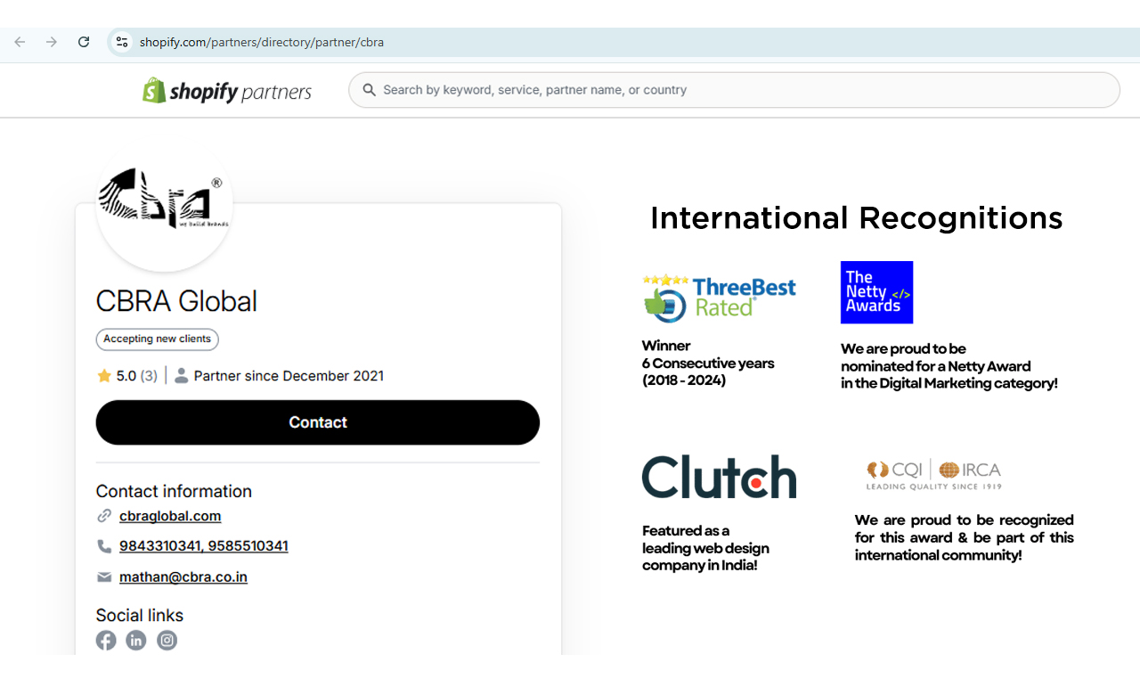 Visit CBRA Global to learn more about our Shopify services and start your journey to online success!