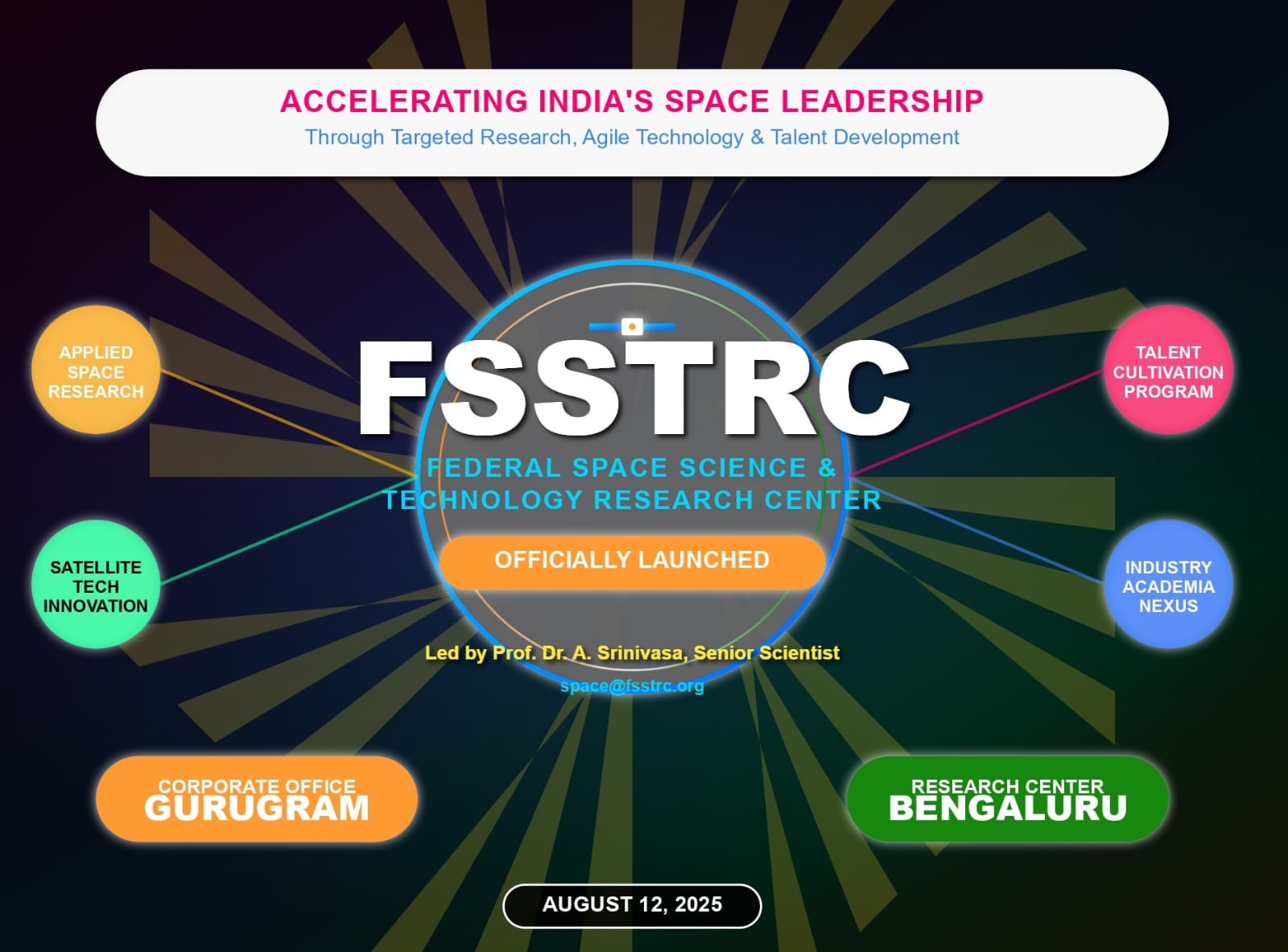 GURUGRAM & BENGALURU – August 12, 2025 – India’s ascent in the global space economy is set to accelerate with the official establishment of the Federal Space Science and Technology Research Center (FSSTRC). With its Corporate Office in Gurugram and its primary Research Center in Bengaluru, the FSSTRC is poised to become a pivotal institution, driving innovation, developing cutting-edge technologies, and nurturing the next generation of space professionals.