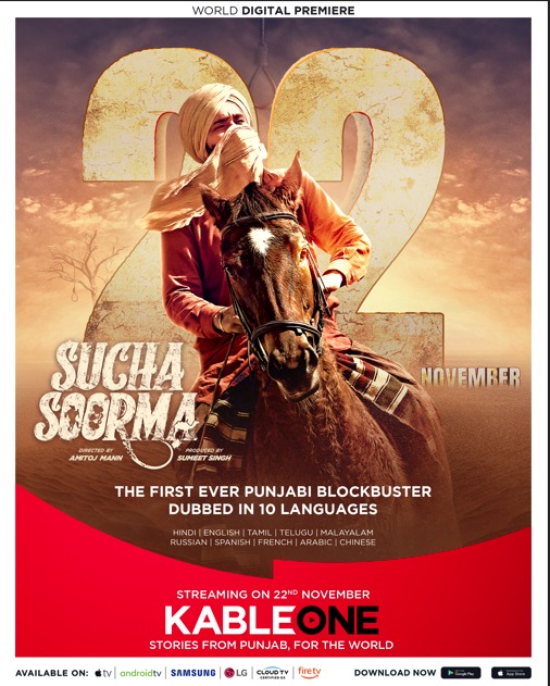First time ever a punjabi film in 10 languages World Digital Premiere of Sucha Soorma – Streaming Exclusively on KableOne from 22nd November