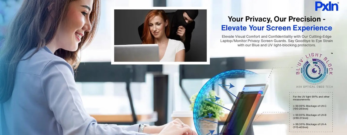 Pxin.in’s BL‘UV’LightBlock technology not only reduces blue light exposure but also enhances overall viewing comfort, making it a game-changer in the Indian market for high-quality privacy screen guards in India.