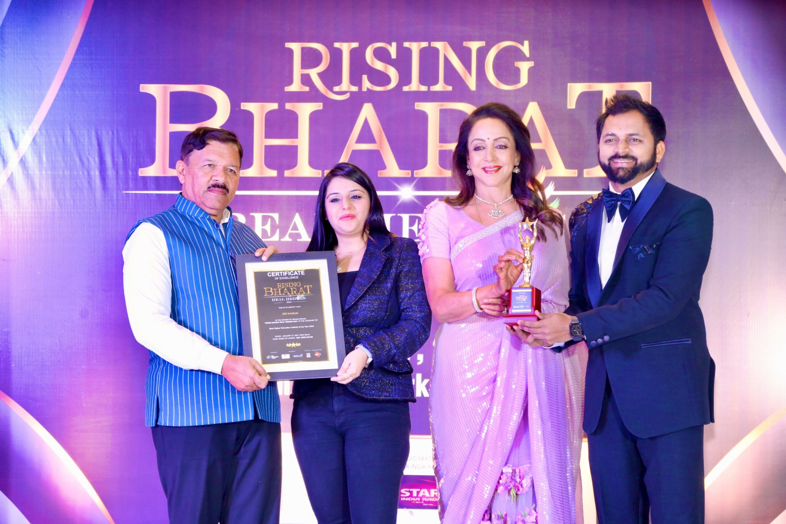 JSK Institute Thane Celebrates a Milestone! Prof Mukesh Gupta & Navishka Gupta receives ‘Excellence in Education Award’ from Legendary Actress Hema Malini!