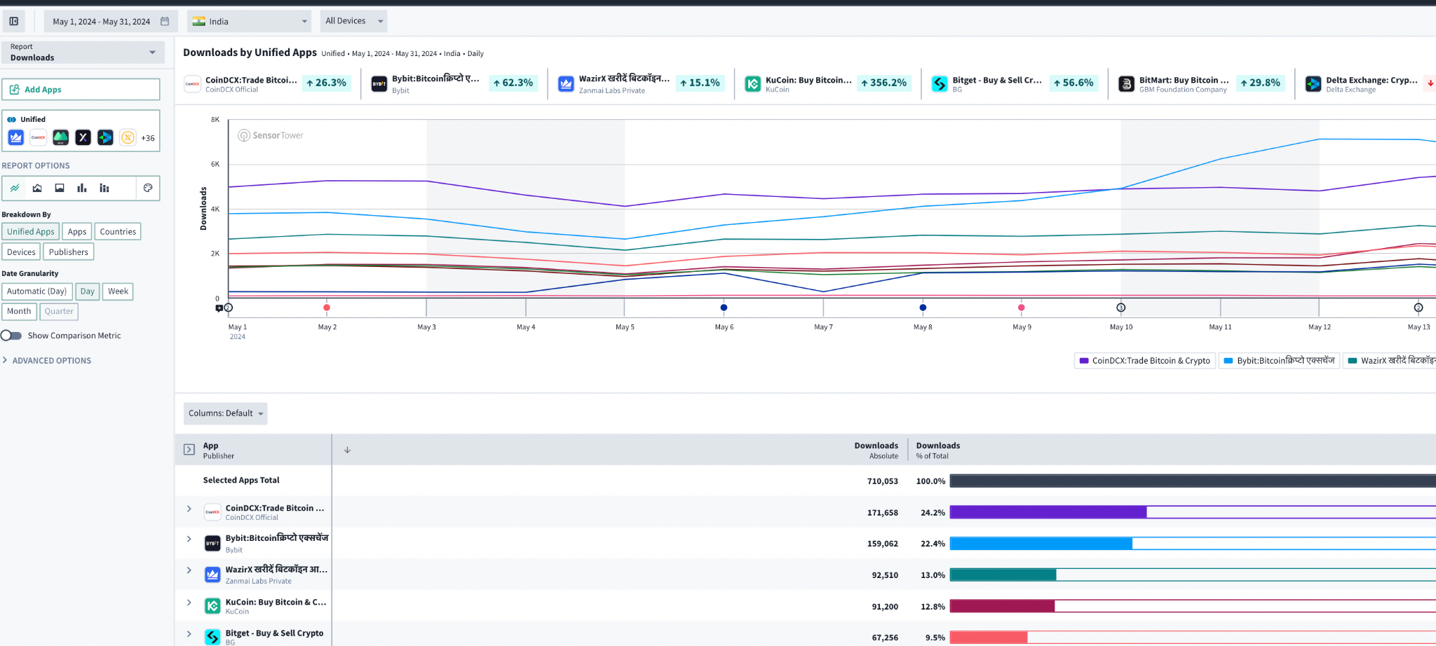 VICTORIA, Seychelles – According to Sensor Tower’s data in May 2024, KuCoin saw a 356% surge in App downloads from India, underscoring its rapid growth as the first FIU-compliant global exchange. The second and third fastest-growing FIU registered compliant exchanges are CoinDCX with a 26.3% increase and CoinSwitch with a 15.1% increase.
