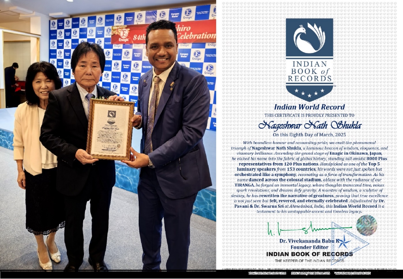 The world watched in awe when Nageshwar Shukla took the grand stage of Enagic, the global giant behind Kangen Water, in Okinawa, Japan. In a stadium roaring with pride and energy, and in front of 8,000+ people from 122 countries, his name shone brightly on the colossal screens as the Indian tricolor waved gloriously across the arena. Chosen as one of the Top 5 luminary speakers out of 153 countries, he delivered a speech that wasn’t just spoken, it was felt, igniting a fire of inspiration in every soul present. That day, the heartbeat of 1.4 billion Indians resonated through him, as he proved that the voice of one determined leader can echo across continents.