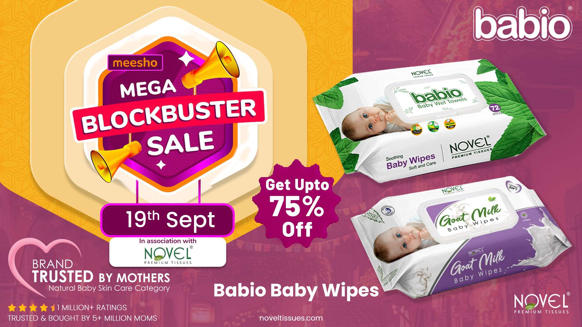 Novel Babio Baby Wipes have been loved by families in India for 22years for their gentle care and quality. Now, during Meesho’s Mega Blockbuster Sale, which starts on 19 September, you can buy Novel baby Products at amazing discounts of up to 75%, making it easier for parents to buy enough supplies without spending too much.
