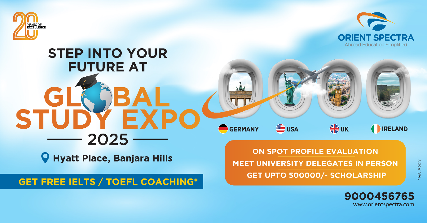 Hyderabad, India – Orient Spectra, a leading name in international education consultancy, proudly announces its flagship event — Global Study Expo 2025, scheduled to take place on 11th October 2025 (Saturday) at Hyatt Place, Banjara Hills, Hyderabad. This one-of-a-kind expo offers aspiring students a chance to engage directly with top international universities and unlock life-changing opportunities to study abroad.
