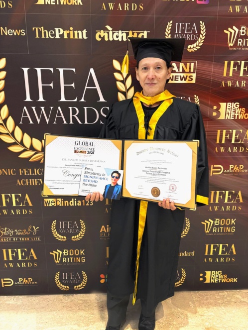 Renowned poet, novelist, and cultural voice from Tripura, North East, Sankha Subhra Devbarman, has been conferred with an Honorary Doctorate by the prestigious Dunster Business School, Switzerland, at a special convocation ceremony held in New Delhi on 6th December 2025.