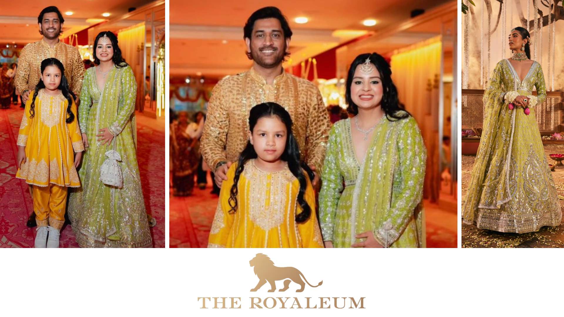 At the event, former captain of the Indian cricket team, Mahendra Singh Dhoni, made a grand appearance with his wife, Sakshi, and their daughter, Ziva. MS Dhoni looked dashing in a glittering golden kurta paired with a Pathani salwar, exuding elegance and charm. Mrs. Dhoni, however, truly stole the show, giving tough competition to Bollywood actresses. She wore a breath-taking light green Anarkali from the well-known Designer- The Royaleum by Hetal Shah. This ensemble was a stunning blend of modern and traditional elements, making her look absolutely radiant.