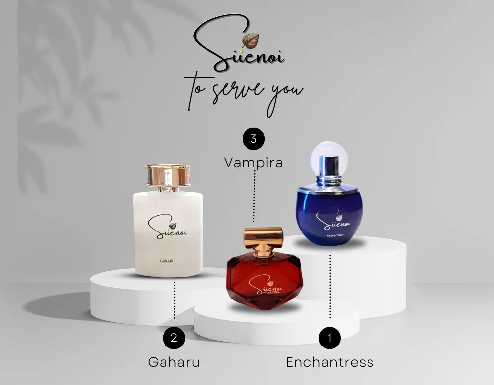 Siienoi, an innovative perfume brand, is proud to announce its official launch. Rooted in elegance and sophistication, Siienoi is set to revolutionize the fragrance industry with its uniquely crafted perfumes and exquisite packaging. The brand introduces three signature creations—Enchantress, Vampira, and Gaharu—designed to celebrate individuality and evoke emotion.