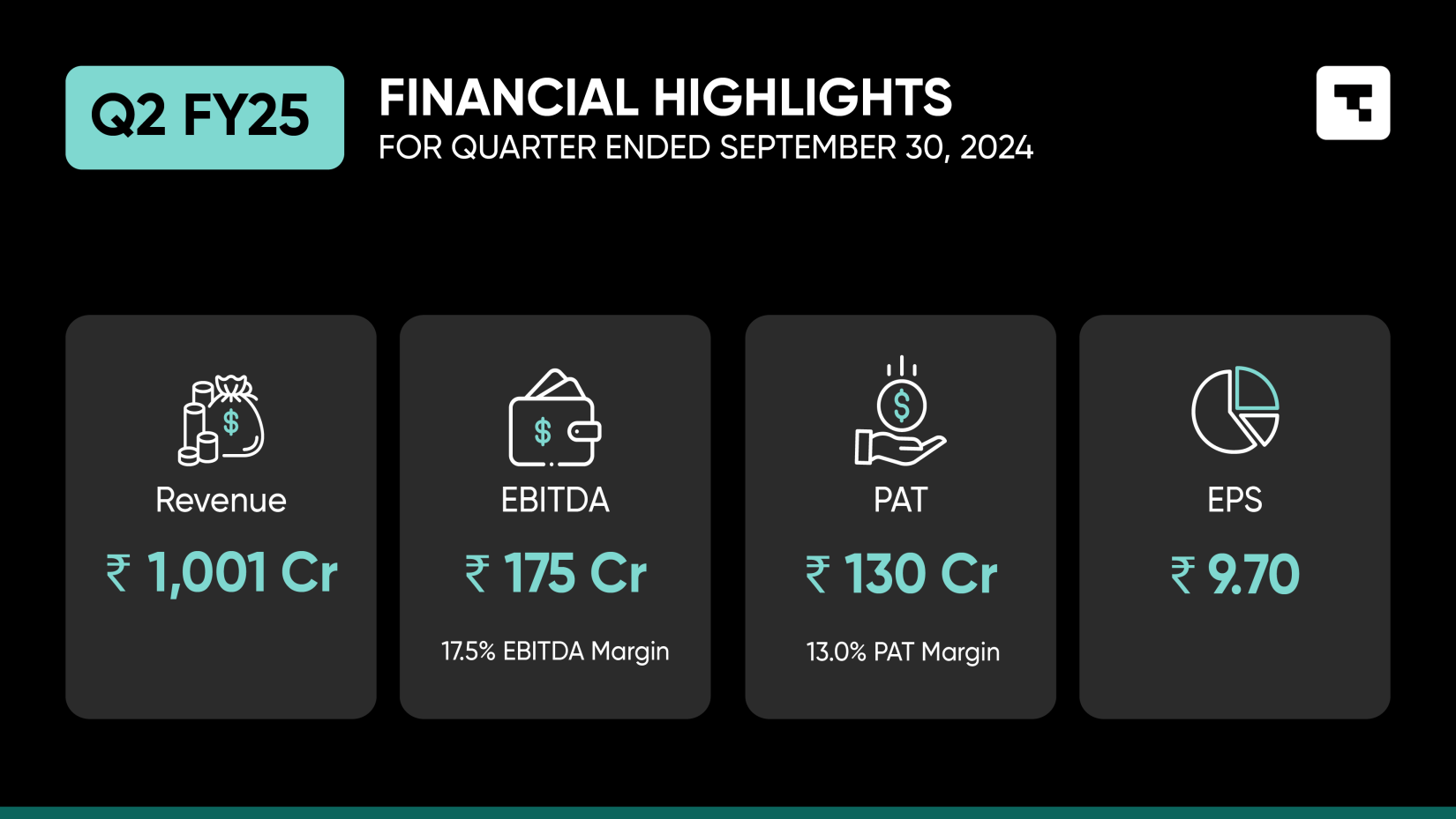 - EBITDA was at ₹ 175Cr. EBITDA margin was at 17.5%