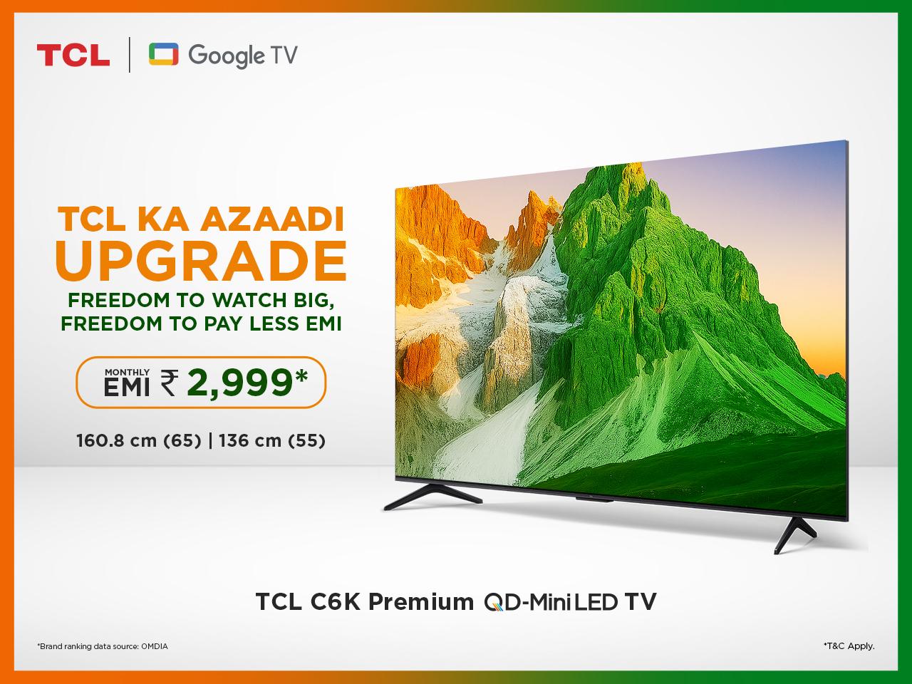 August 14 , 2025: TCL, a leading consumer electronics brand and a global player in the TV industry celebrates India’s Independence Day with exciting offers on its premium range of QD Mini-LED TVs – C6K and C6KS & QLED TVs – P8K, and P7K along with 4K HDR TV – P6K. It will be a part of its limited edition offer where customers can avail attractive EMI offers starting at INR 1,999 per month.