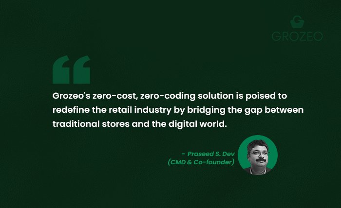 Grozeo, founded by Praseed S. Dev and his team, is at the forefront of technological innovation in the retail sector. This advanced solution offers a zero-cost, zero-coding, inter-merchant physical marketplace that is easy to set up within minutes. Grozeo’s digital platform is not only customizable with tech solutions for pick and pack but also provides managed services for last-mile delivery and communication with various stakeholders, including customers, order pickers, and delivery personnel.