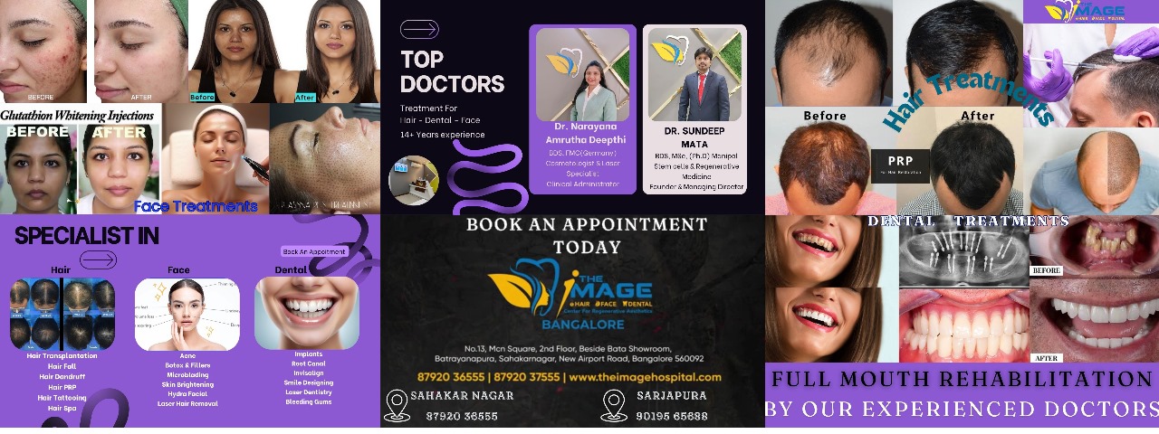 The Image Hospital in Bangalore is your go-to destination for top-rated dental and dermatological care. With a team of highly skilled professionals, state-of-the-art facilities, and a wide range of services offered, you can trust that your hair, face, and dental treatments are in good hands at The Image Hospital. Schedule an appointment today to experience the exceptional care and expertise provided by our top dentists and dermatologists. Your journey to healthier skin, beautiful hair, and a brighter smile starts here at The Image Hospital.