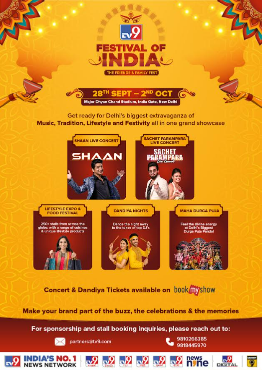 Speaking ahead of the festival, K Vikram, Chief Operating Officer, TV9 Network, said, “With the grand success of the last two editions, we are raising the bar this year with LIVE music concerts, dandiya garba nights with celebrity DJs, and maha Durga puja celebrations. The lifestyle stalls will also feature a wider variety and international stalls. With a mix of culture, tradition, festivity, and modernity, the festival truly reflects the spirit of India and TV9 Network, India’s No. 1 News Network”.